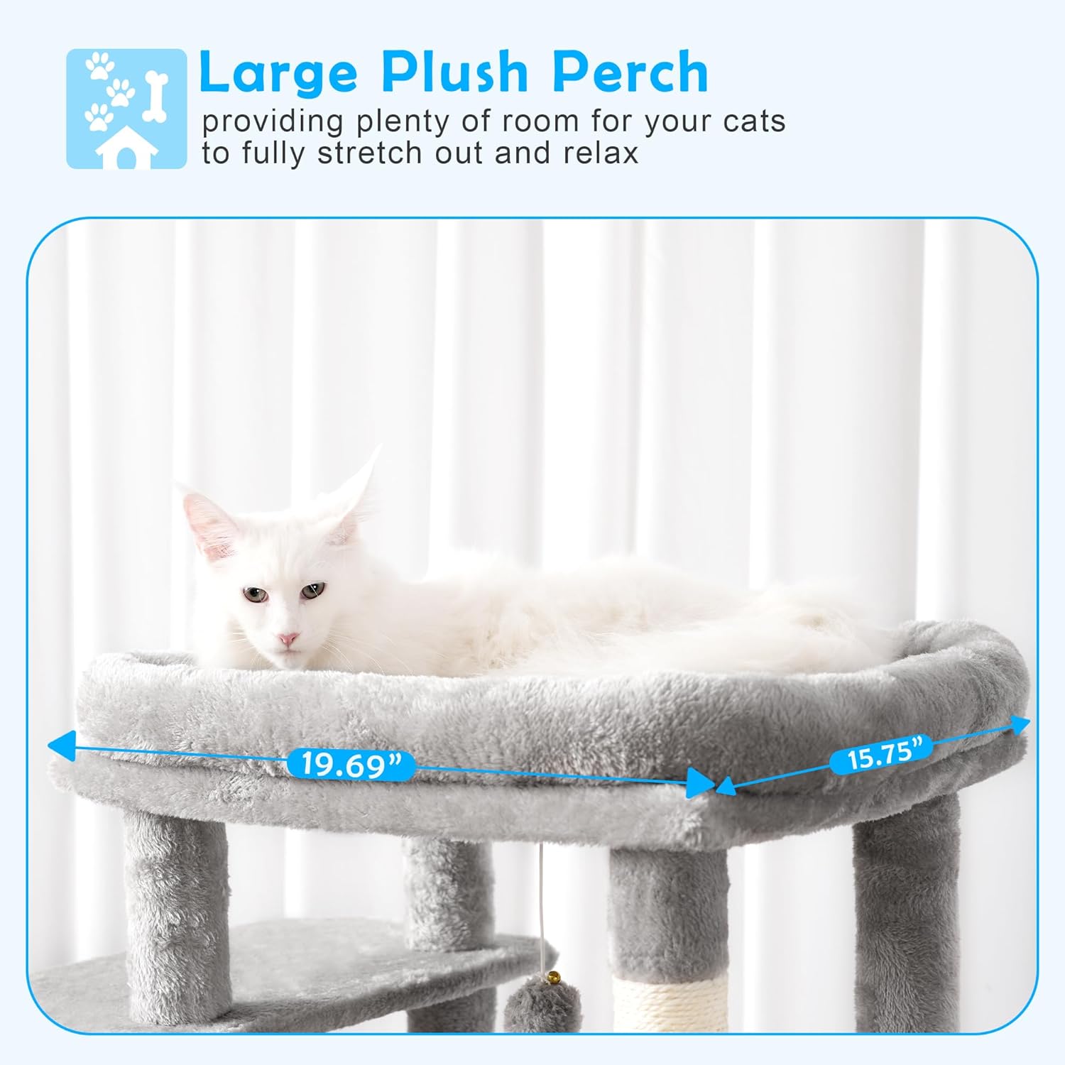 LARGE-TOP PERCH: This deluxe cat tree features an oversized perch that provides plenty of room for big cats to fully stretch out and relax, and the thick and wrapped platform provides strong support when cats rest their furry heads on top