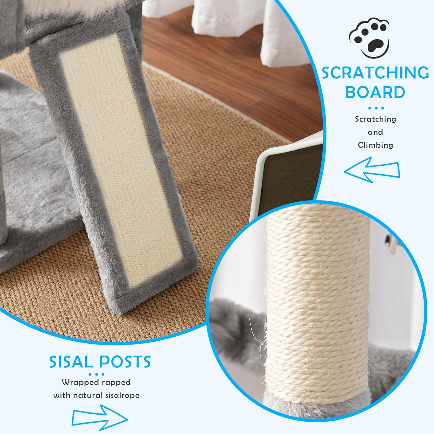 PERFECT TO SCRATCH: This big cat tower features posts and ramp wrapped in natural sisal. These robust posts and ramp are designed to satisfy your cat natural scratching instincts, promoting healthy claws while keeping your furniture safe