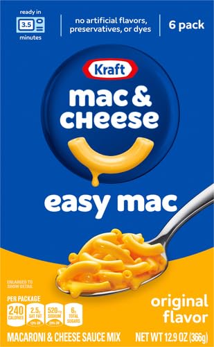 KRAFT MACARONI & CHEESE: One 6 ct box of Kraft Easy Mac Original Macaroni & Cheese Dinner Single Serve Packets