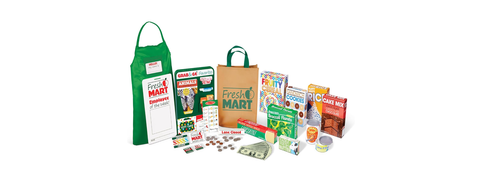 Melissa & Doug Fresh Mart Grocery Store Play Food and Role Play Companion Set
