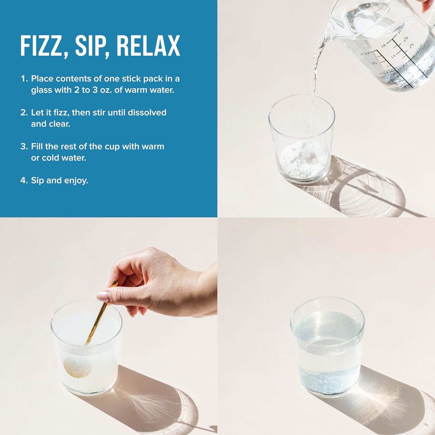 DAILY SUPPLEMENT FOR ADULTS: Just mix one single-serve packet with water, fizz, sip, chill and feel the power of CALM