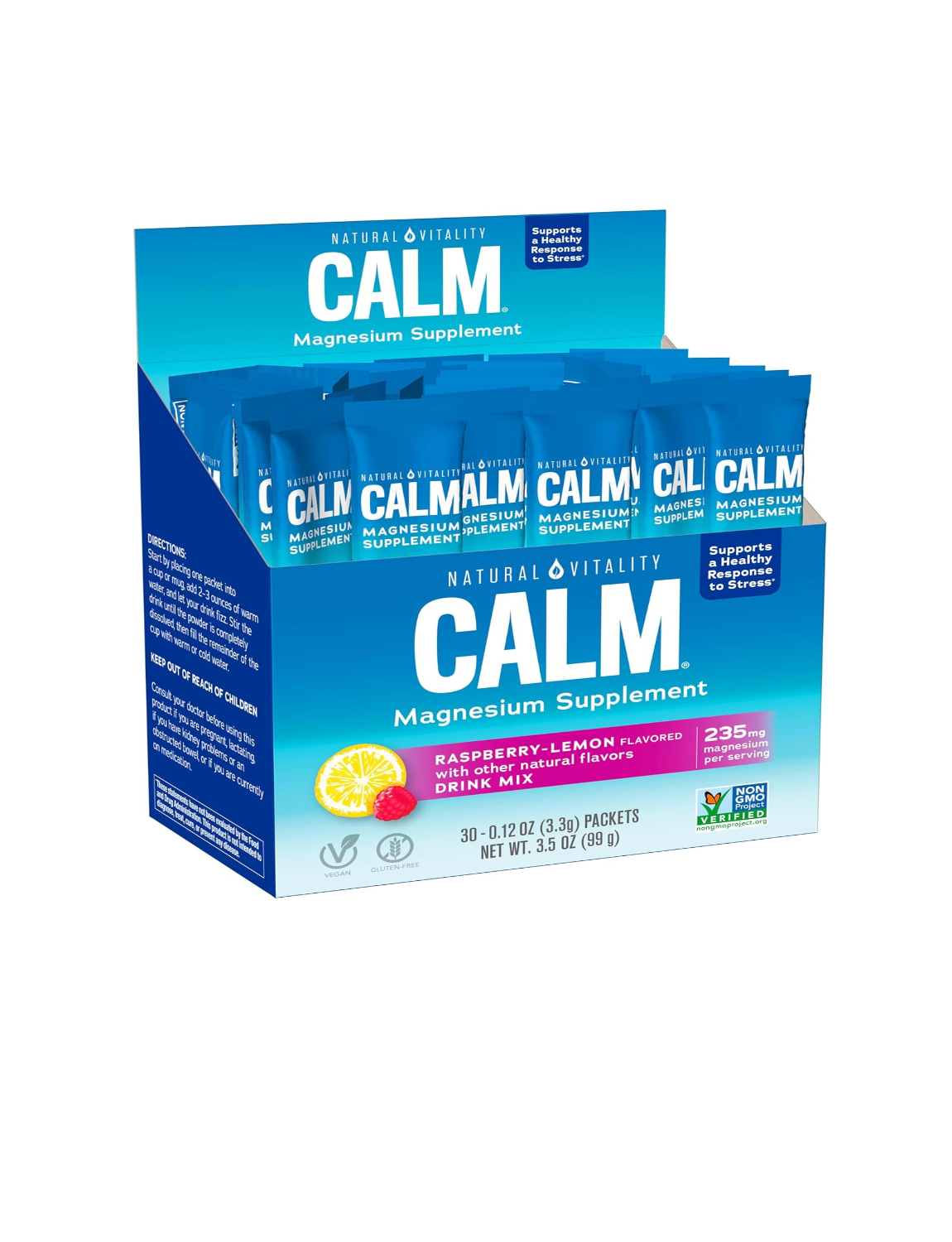 DIETARY SUPPLEMENT: 30 packs of 0.12 oz. single-serve packets of Natural Vitality CALM Magnesium Supplement Drink Mix that helps support healthy magnesium levels and a healthy response to stress