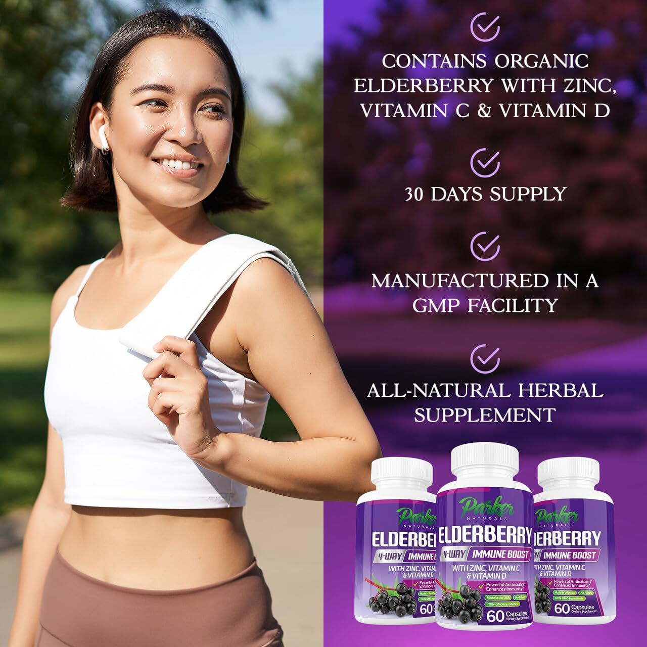 Powerful Immune Boost: Our organic elderberry with Vitamin C and zinc supplement provides 4-way support with elderberry extract, Vitamin C, Vitamin D, and zinc, offering key nutrients that contribute to immune system function and overall wellness.