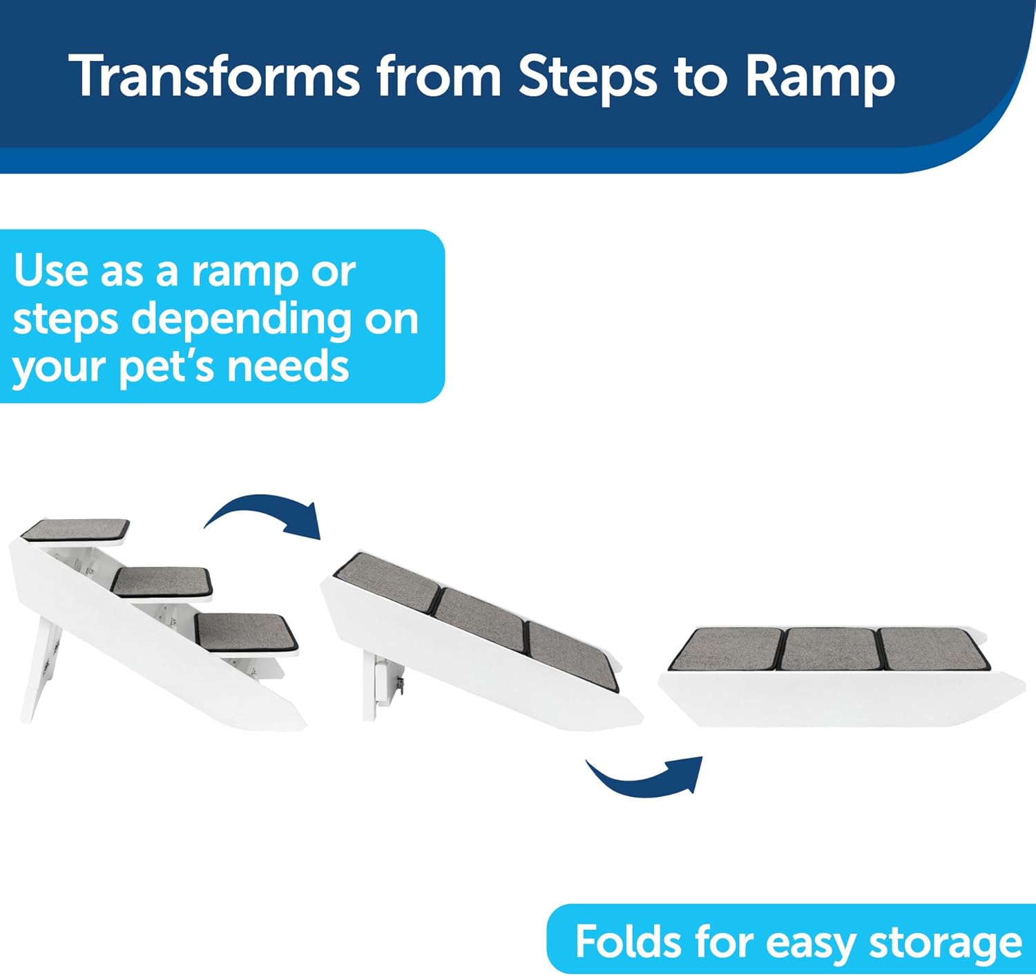 Pet Stairs & Ramp Combo: This piece of furniture transforms from a 16-inch dog ramp to 20-inch dog stairs; Use as stairs by your bed at night, then transition to a ramp by your couch during the day; Great for small, medium, or large dogs or cats up to 200 lbs