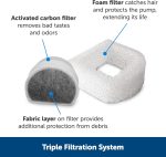 FILTRATION: Our cat fountains are equipped with an advanced filtration system, ensuring your pets have access to fresh, clean water. The triple filter contains 2.5x more activated carbon than generic brands, effectively filtering out impurities and extending the pet fountain’s lifespan.